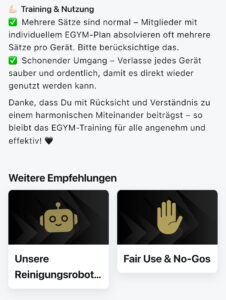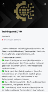„Schau gern mal in der App unter Club-Regeln & Etikette – da findest Du alle Infos zum EGYM-Training.“